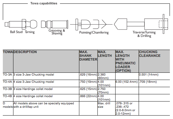 Models types include: Collect type for gripping the shaft of fasteners and for machining the head; and the 3 jaw type for gripping over the head for machining the shaft of a fastener. Drilling units and drilling/tapping units are optional accessories on both type machines. Dedicated drilling and tapping machines are available upon special request.